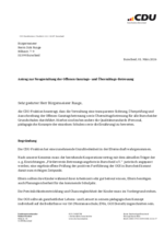 Hier finden Sie eine Übersicht der letzten Anträge und Anfragen, die unsere CDU-Stadtrats-Fraktion an die Stadtverwaltung gestellt hat. Ziel hierbei ist es, Verbesserungen für unsere Bürger und unsere Stadt zu erreichen: